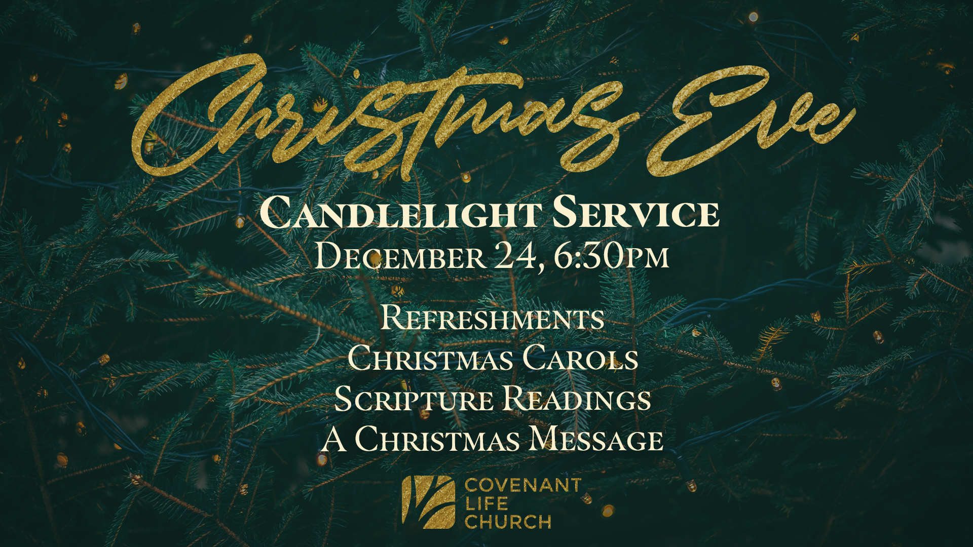 Covenant Life Church invites you to join us as we celebrate the dawn of hope in the birth of Jesus Christ this Christmas Eve. Refreshments will be served at 6:30pm followed by a service of carols, readings, and a brief message celebrating the humble king, Jesus Christ. All are welcome!